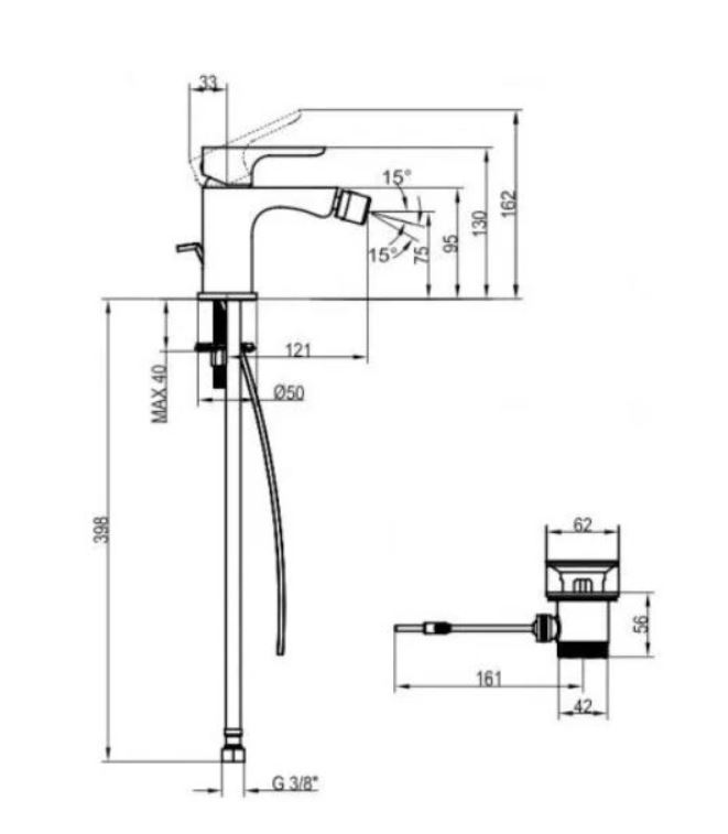 BATERIE PENTRU BIDEU KLUDI AMEO, CU VENTIL, CROM, 3,8 L/min