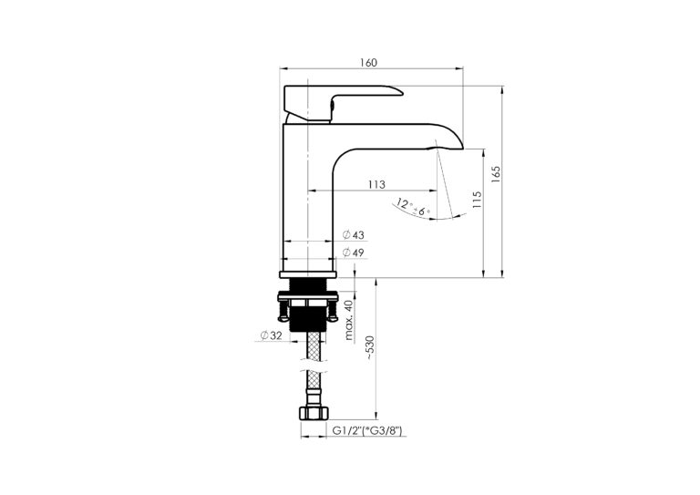 BATERIE PENTRU LAVOAR INALTA, DEMM NEW LOBA, CU VENTIL, NEGRU MAT, H 330 mm